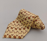 Vintage Hermes Paris 5387 OA Silk Designer Necktie Peafowl Peacock Pattern Pale Yellow Tie France