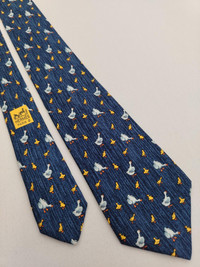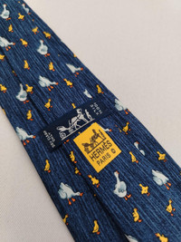 DESCRIPTION A used/pre-owned exquisite authentic vintage Hermes Paris, fine pure silk, duck and duckling pattern, and ready-to-wear designer neckwear. Made in FRANCE with initial number 7595 SA. The condition of the necktie is EXCELLENT and the overall rating is 8.5/10. The tie showed slight signs of use before. Don’t hesitate to ask any questions about your inquiry. CONDITION: EXCELLENT and overall rating is 8.5/10. The tie showed slight signs of use before without any significant flaws, pulls, and stains. The material is in great condition as well MEASUREMENT: Width 3 1/2 inches, Length 61 inches