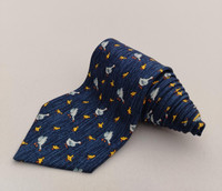 Vintage Hermes Paris 7595 SA Silk Designer Necktie Duck & Duckling Pattern Blue Used Tie France