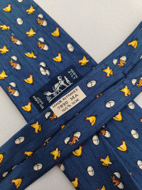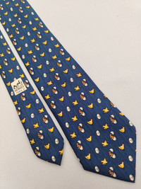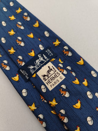 DESCRIPTION A used/pre-owned exquisite authentic vintage Hermes Paris, fine pure silk, chick & rabbit pattern, and ready-to-wear designer neckwear. Made in FRANCE with initial number 7980 MA. The condition of the necktie is EXCELLENT and the overall rating is 8.5/10. The tie showed slight signs of use before. Don’t hesitate to ask any questions about your inquiry. CONDITION: EXCELLENT and overall rating is 8.5/10. The tie showed slight signs of use before without any significant flaws, pulls, and stains. The material is in great condition as well MEASUREMENT: Width 3 1/2 inches, Length 64 inches MATERIAL: 100% Silk