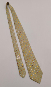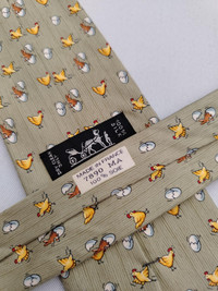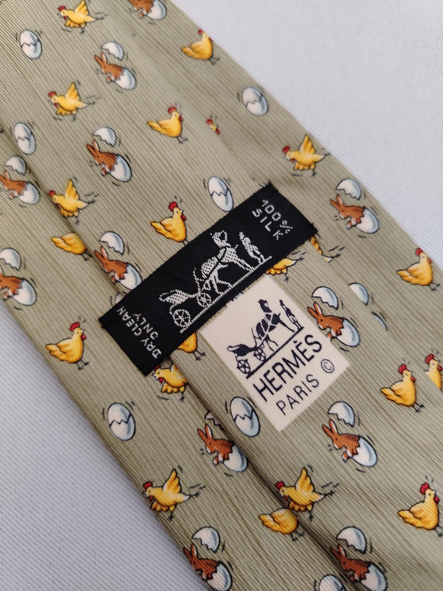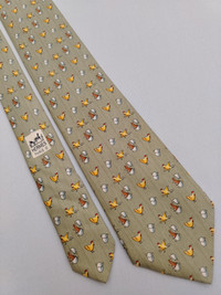 DESCRIPTION A used/pre-owned exquisite authentic vintage Hermes Paris, fine pure silk, chick & rabbit pattern, and ready-to-wear designer neckwear. Made in FRANCE with initial number 7980 MA. The condition of the necktie is EXCELLENT and the overall rating is 8.5/10. The tie showed slight signs of use before. Don’t hesitate to ask any questions about your inquiry. CONDITION: EXCELLENT and overall rating is 8.5/10. The tie showed slight signs of use before without any significant flaws, pulls, and stains. The material is in great condition as well MEASUREMENT: Width 3 1/2 inches, Length 62 inches MATERIAL: 100% Silk
