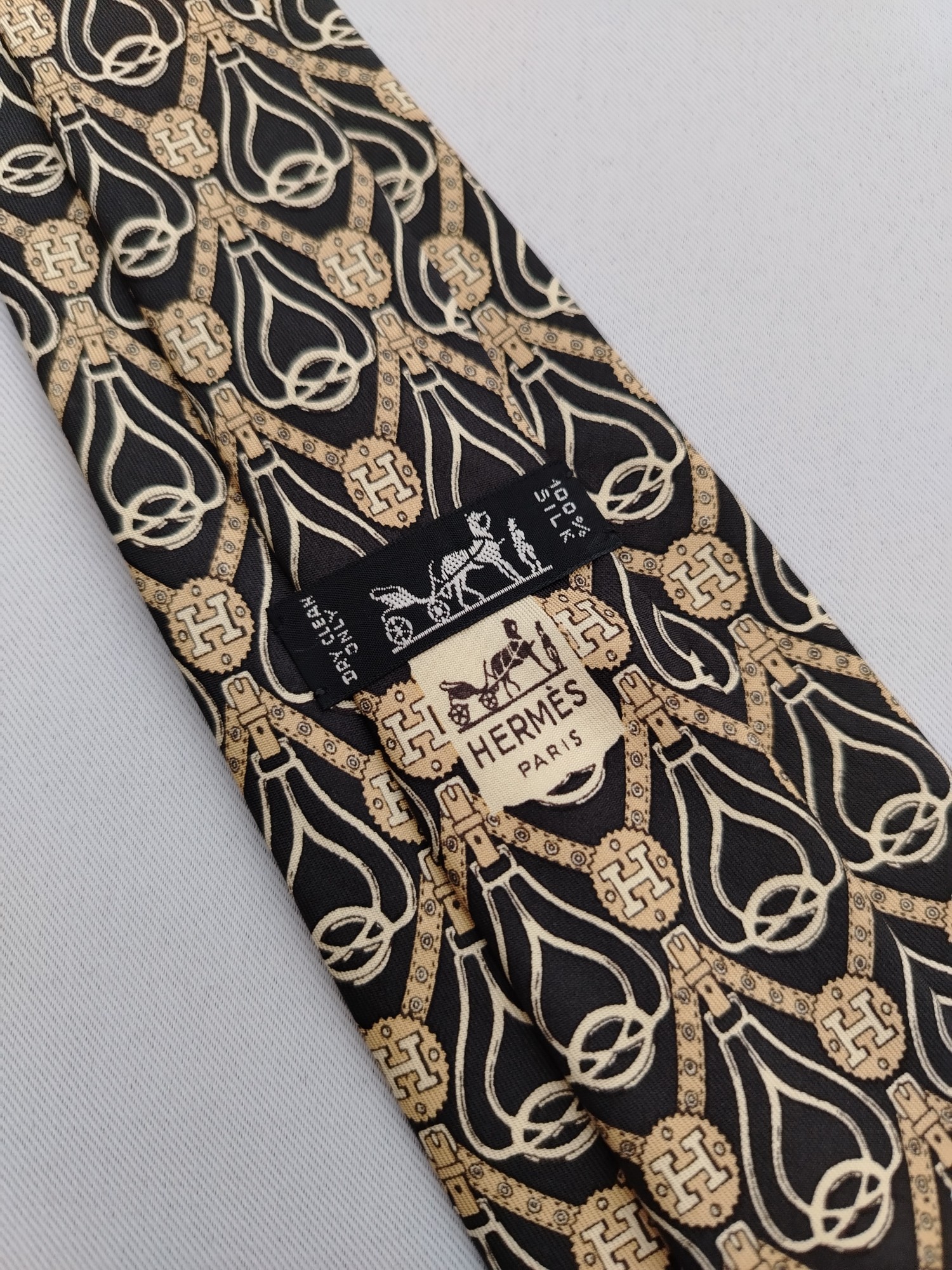 DESCRIPTION A used/pre-owned exquisite authentic vintage Hermes Paris, fine pure silk, H stirrup belt pattern, and ready-to-wear designer neckwear. Made in FRANCE with initial number 629 TA. The condition of the necktie is EXCELLENT and the overall rating is 8.5/10. The tie showed slight signs of use before. Don’t hesitate to ask any questions about your inquiry. CONDITION: EXCELLENT and overall rating is 8.5/10. The tie showed slight signs of use before without any significant flaws, pulls, and stains. The material is in great condition as well MEASUREMENT: Width 3 7/8 inches, Length 56 inches MATERIAL: 100% Silk