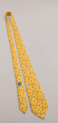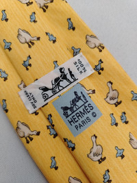 DESCRIPTION A used/pre-owned exquisite authentic vintage Hermes Paris, fine pure silk, whimsical bird pattern, and ready-to-wear designer neckwear. Made in FRANCE with initial number 7595 SA. The condition of the necktie is EXCELLENT and the overall rating is 8.5/10. The tie showed slight signs of use before. Don’t hesitate to ask any questions about your inquiry. CONDITION: EXCELLENT and overall rating is 8.5/10. The tie showed slight signs of use before without any significant flaws, pulls, and stains. The material is in great condition as well MEASUREMENT: Width 3 1/2 inches, Length 60 inches MATERIAL: 100% Silk