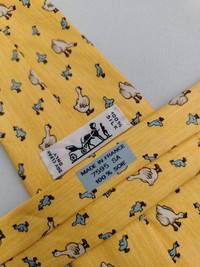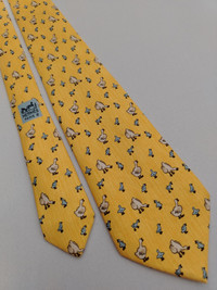 Vtg Hermes Paris 7595 SA Silk Designer Necktie Duck & Duckling Pattern Tie