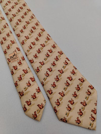 Vtg Hermes Paris 7924 MA Silk Designer Necktie Squirrel Pattern Beige Tie France