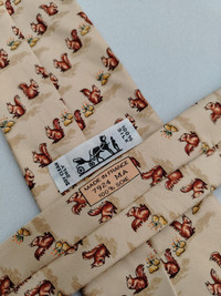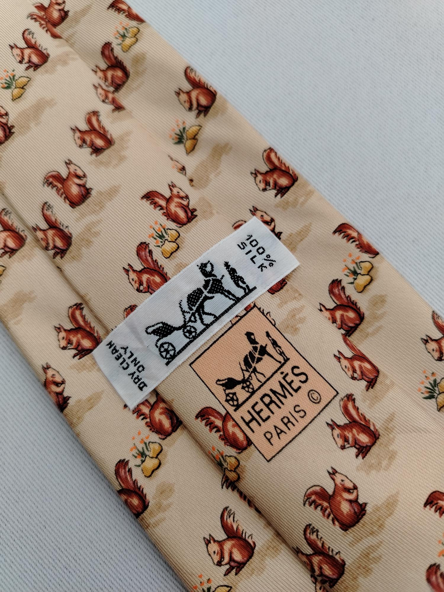 DESCRIPTION A used/pre-owned exquisite authentic vintage Hermes Paris, fine pure silk, squirrel pattern, and ready-to-wear designer neckwear. Made in FRANCE with initial number 7924 MA. The condition of the necktie is EXCELLENT and the overall rating is 8.5/10. The tie showed slight signs of use before. Don’t hesitate to ask any questions about your inquiry. CONDITION: EXCELLENT and overall rating is 8.5/10. The tie showed slight signs of use before without any significant flaws, pulls, and stains. The material is in great condition as well MEASUREMENT: Width 3 3/4 inches, Length 62 inches MATERIAL: 100% Silk