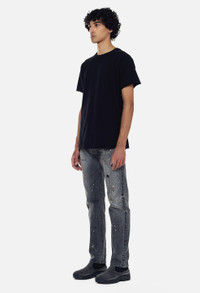Relaxed fit tee with unfinished edges and a hem that is cut slightly longer in front than back. This tee is designed with midweight recycled cotton for slightly textured fabric. Made in Los Angeles. 100% Cotton. Explore our Tee Guide FABRIC & FIT This tee is intended to fit slightly oversized. If you do not prefer an oversized fit, we recommend sizing down one. Model is 6'2" 160 lbs and wears a size 2 / Medium. CARE GUIDE Machine wash cold, gentle cycle. Hang to dry.
