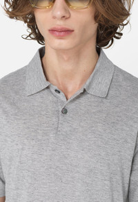 Classic fit polo shirt. Designed with lightweight cotton-cashmere blend fabric with a soft and breathable hand-feel. Spread collar with two button closure. Straight hem. Made in Los Angeles. 90% Cotton / 10% Cashmere. FABRIC & FIT Fits true to size, take your normal size.Model is 6'1" 160 lbs and wears a size 2 / Medium. CARE GUIDE Dry Clean Only
