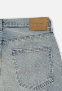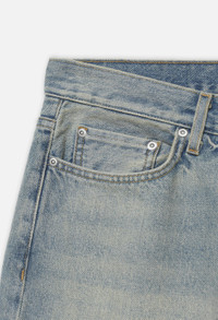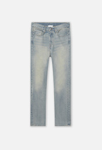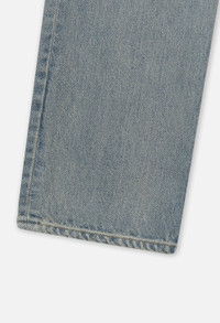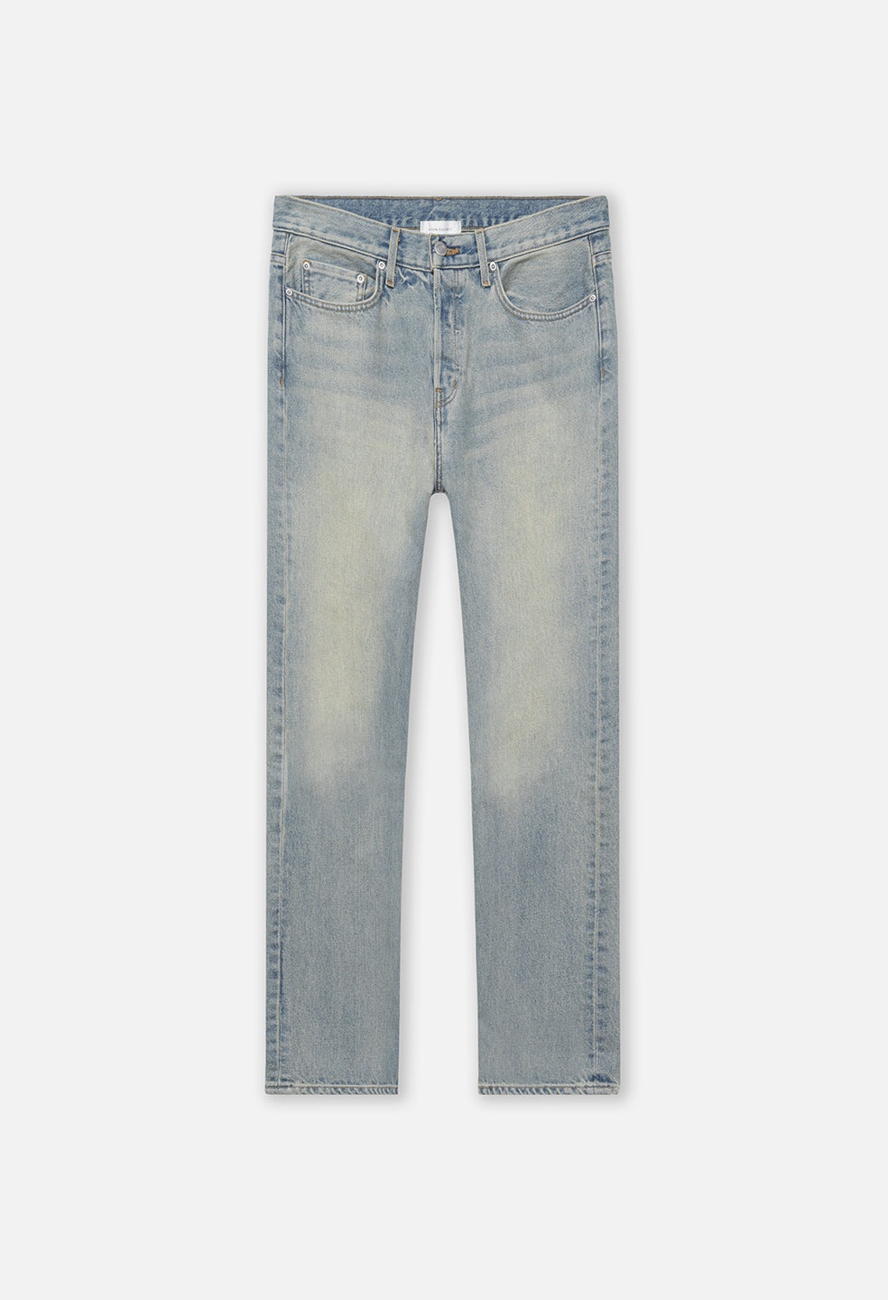 3X1 Cone Mills denim in light washed indigo. Classic straight leg fit with a medium rise and slight taper from the knee. Five pocket design with a button fly. Branded hardware. Suede logo patch at the back waist. Classic contrast stitching. Made in Los Angeles. 100% Cotton. EXPLORE THE DENIM FIT GUIDE FABRIC & FIT USA Denim fits true to size compared to our Made in Japan styles. We recommend selecting your usual size. For additional details, please refer to the measurements. CARE GUIDE Machine Wash Cold / Wash With Like Colors / Do Not Bleach / Do Not Iron / Do Not Tumble Dry