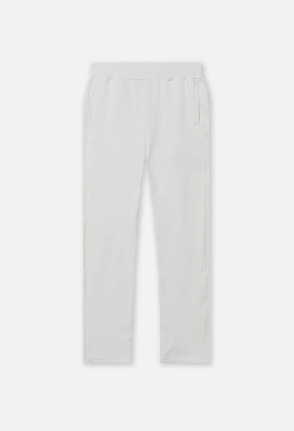 Straight leg French terry sweats. Three pocket design with two front entry welt pockets and one zip closure pocket at the back right. Elasticated waist with adjustable internal drawstring closure. Reversed loop-side stripe detailing along the legs adds a subtle design element. Custom John Elliott branded zipper hardware. 100% Cotton. FABRIC & FIT Fits true to size, take your normal size.Model is 6'2" 160 lbs and wears a size 2 / Medium. CARE GUIDE Machine Wash Cold / Wash With Like Colors /Do Not Bleach /Iron LowDo Not Dry Clean