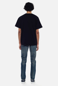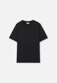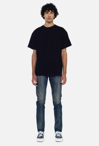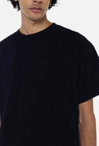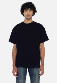 Oversized fit tee with a relaxed neck and slightly longer than average length. This tee is designed with recycled cotton and features a vintage-inspired blind stitch detail at the neck, sleeves, and hem. Ribbed neck. Made in Los Angeles. 100% Cotton. FABRIC & FIT This tee is intended to fit oversized. If you do not prefer an oversized fit, we recommend sizing down one. Model is 6'2" 160 lbs and wears a size 3 / Large. CARE GUIDE Machine wash cold, hang to dry.