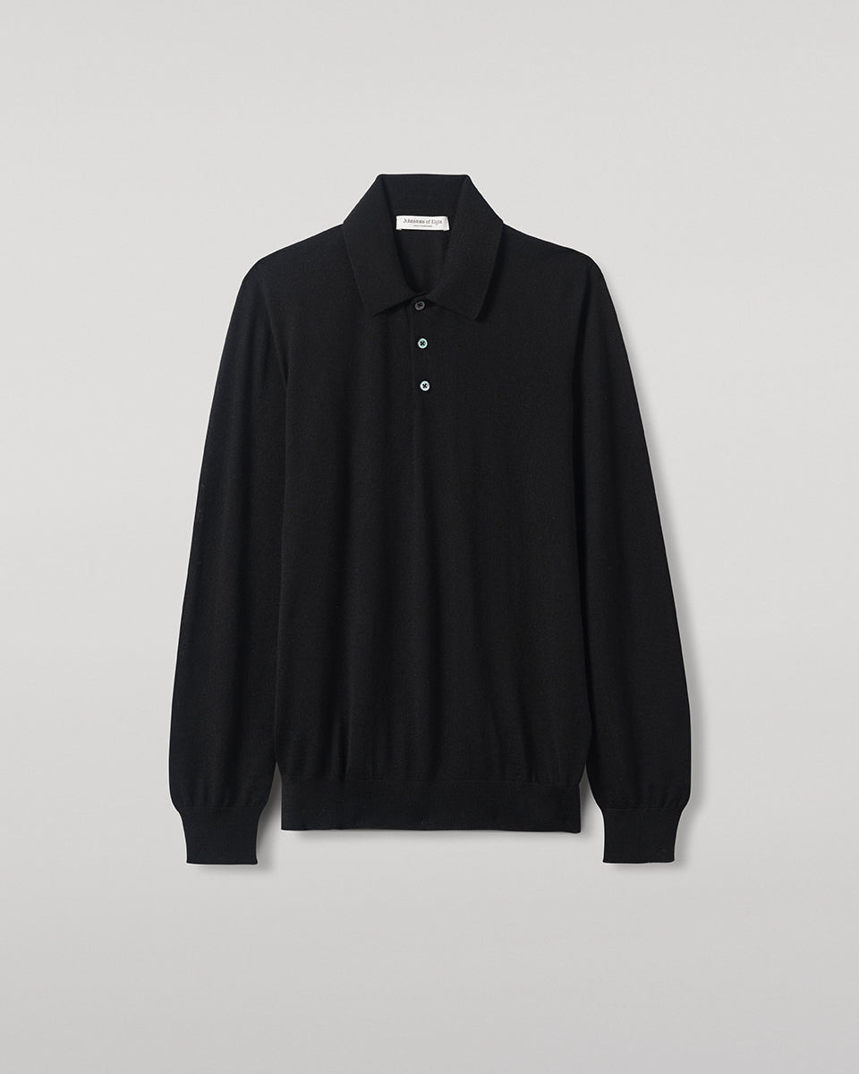 This slim-fitting long-sleeved polo top in superfine cashmere is complete with a classic button placket. Lightweight, crease-resistant and refined. PRODUCT DETAILS 100% Superfine Cashmere 3 Ply: Three individual strands are twisted to create this yarn, producing a durable, lightweight knit. Model is 6ft2 and wear a size M Made in Scotland Code: KAI05481