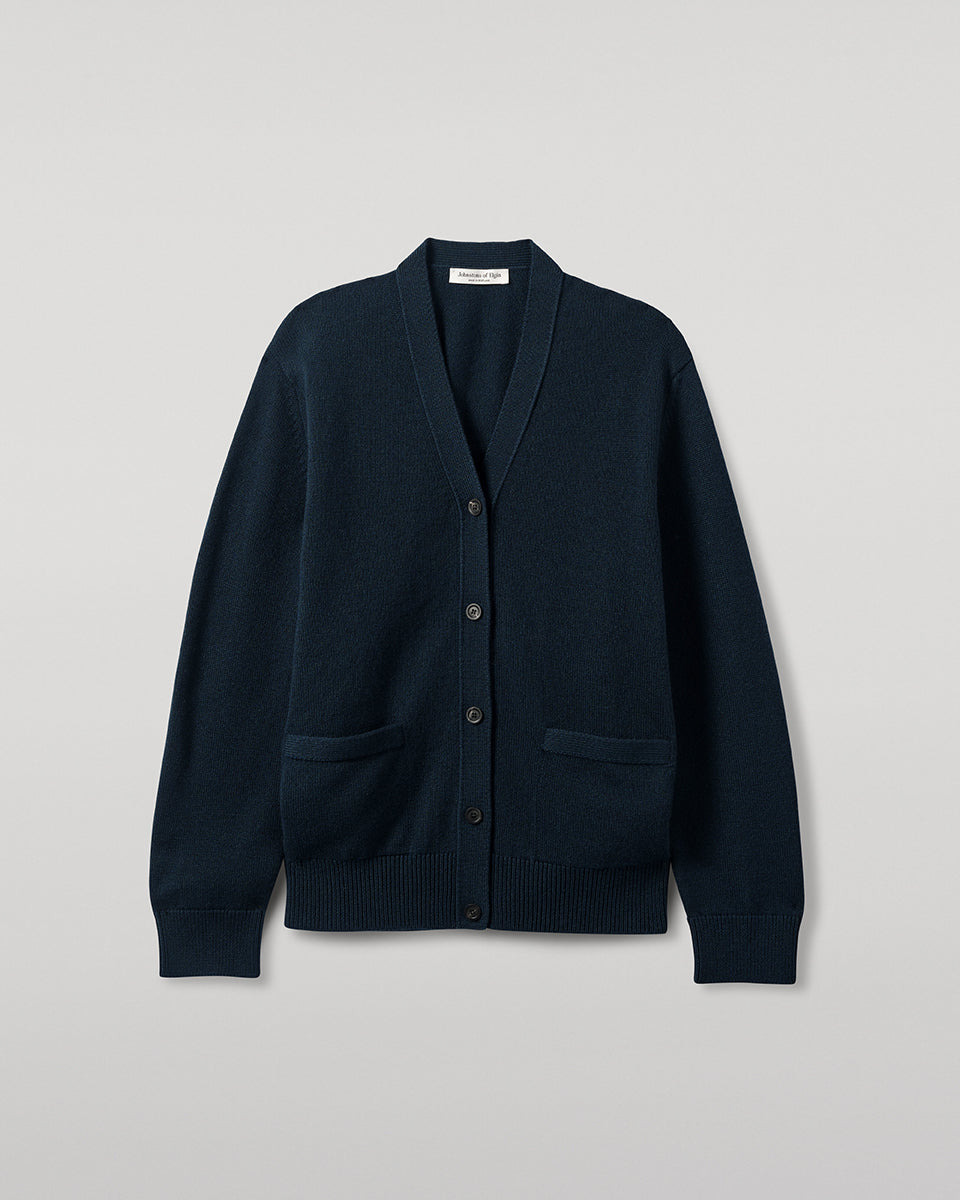 Heavier-weight cardigan with a boxy shape. Internal and external pockets offer subtle utility. Ideal for layering. PRODUCT DETAILS 100% Cashmere 4 Ply: Four individual strands are twisted to create this yarn, producing a durable, light-mid knit. Model is 5ft10 and wear a size S Made in Scotland Code: KAA05560