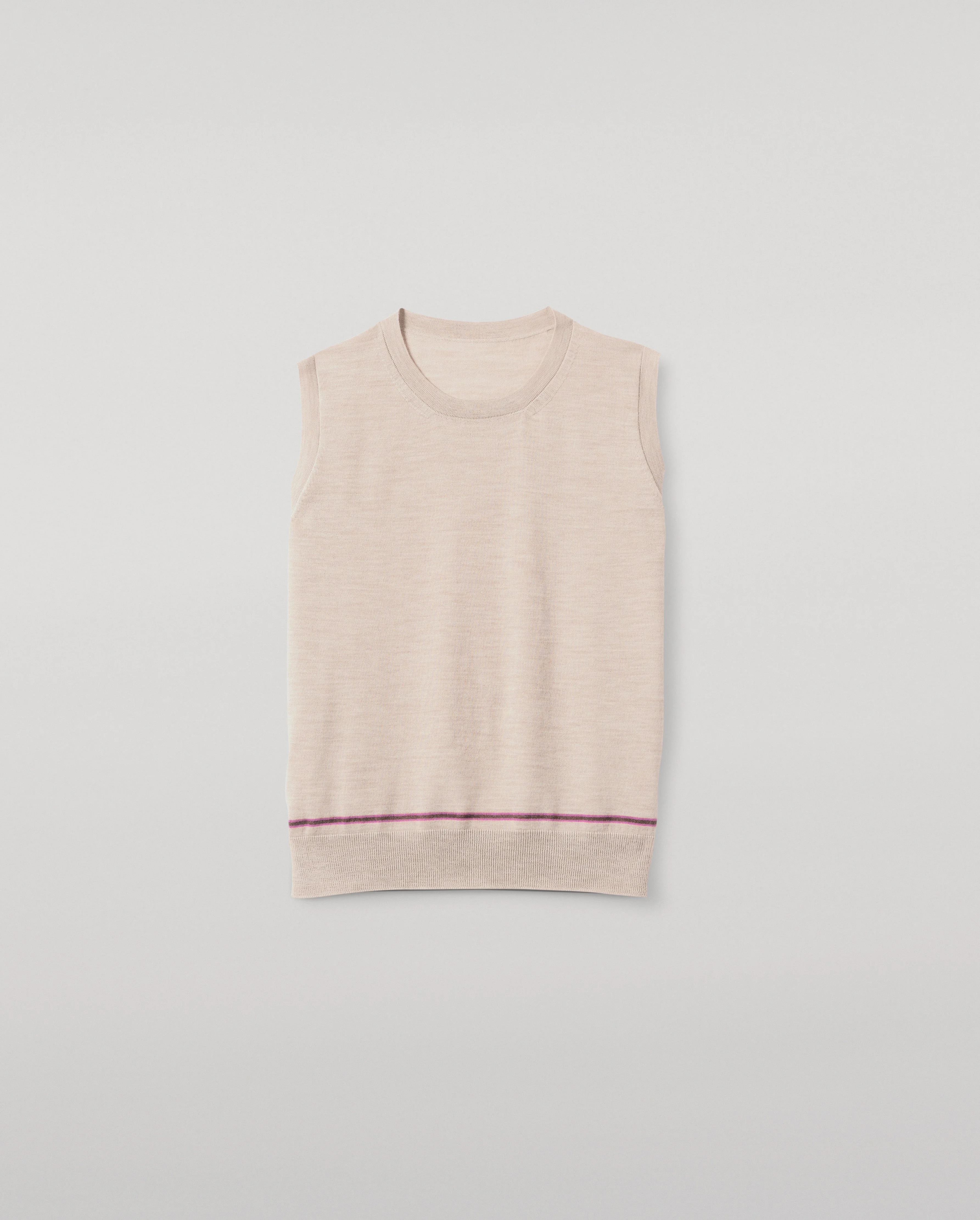 Inspired by fine-gauge archive underwear styles knitted in Hawick, the Brae Crew Tank features refined detailing such as two-colour stripes placed above the hem and finely engineered rib trims. Crafted in our superfine 100% Merino Wool, pair it with our Brae Crew Cardigan as a summer ‘twinset’. PRODUCT DETAILS • Regular Fit • 100% Merino Wool • Natural • Ribbed Trim • Stripe Detailing • Made In Scotland • Model is 5ft10 / 178cm and wears a S • KBI01063