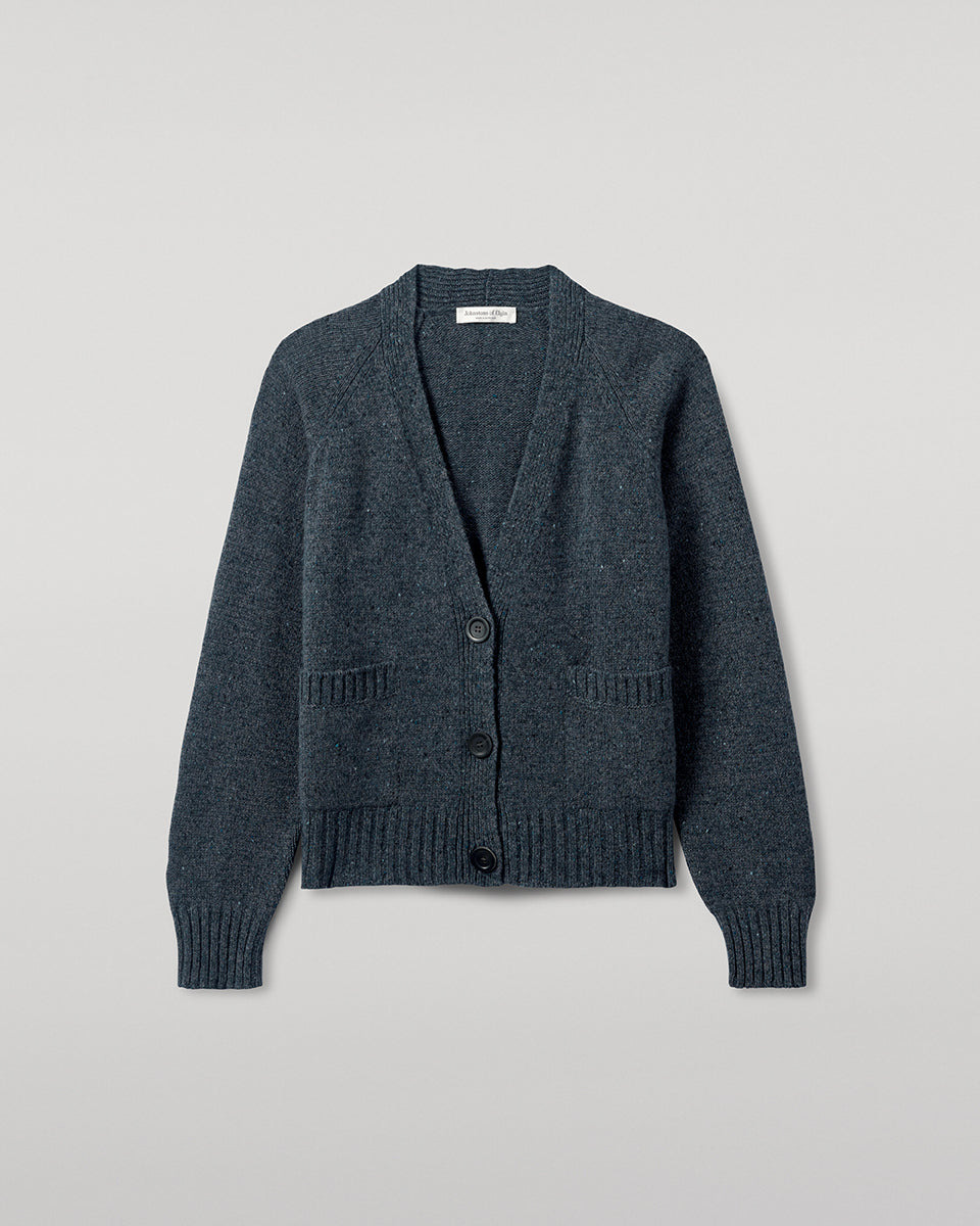 The boxy silhouette features raglan sleeves and integrally knitted patch pockets accented with contemporary buffalo horn buttons. Our exclusive yarn is carefully crafted, with contrasting 'neps' hand-sprinkled into the manufacturing process, resulting in a one-of-a-kind Donegal pattern. PRODUCT DETAILS 100% Cashmere Model is 5ft10 and wear a size S Made in Scotland Code: KAC05090