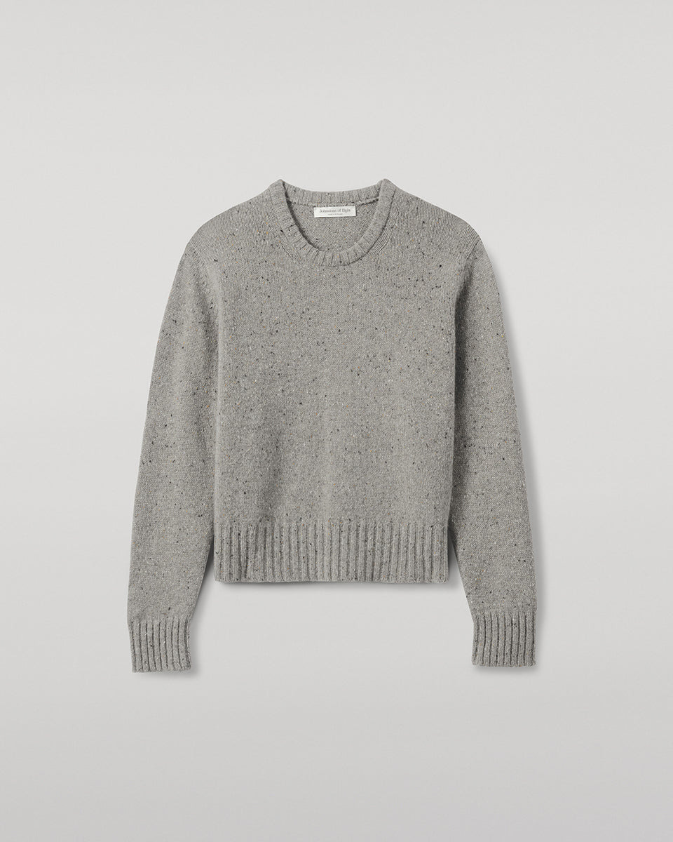 Textural Donegal cashmere crewneck. Spun in-house with hand-sprinkled neps for a one-of-a-kind finish. Donegal knitwear is crafted using multi-tonal yarns, spun with flecks of contrasting colour to create a beautifully mottled, heathered effect. At Johnstons of Elgin, we dye and spin our own Cashmere Donegal yarn, combining carefully selected hues from our seasonal palette. We then twist in complementary colours to create marls that are exclusive to us. PRODUCT DETAILS 100% Cashmere Model is 5ft10 and wear a size S Made in Scotland Code: KAC05289