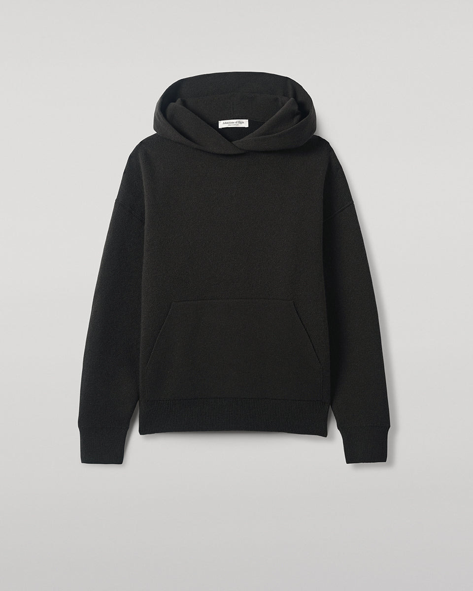 Iron & Black: Bonded cashmere and merino layers with Lycra for stretch. A refined approach to casualwear. Wear with matching joggers. PRODUCT DETAILS 65% Cashmere 27% Merino Wool 8% Elastane 4 Ply: Four individual strands are twisted to create this yarn, producing a durable, light-mid knit. Iron & Black Model is 5ft10 and wear a size S Oversized Fit Made in Scotland Code: KBA01034