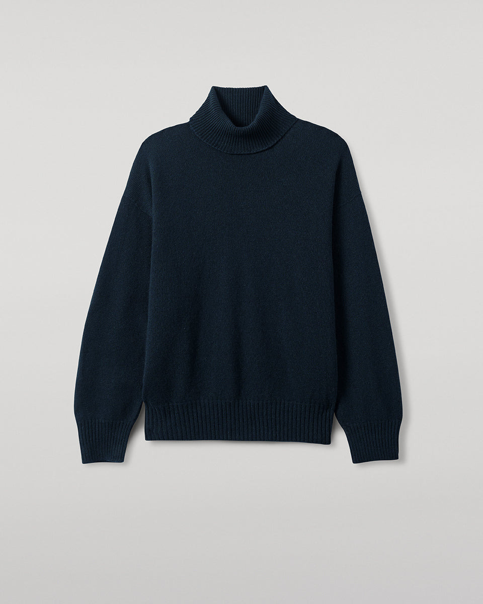 Streamlined roll neck with a stepped hem and side splits. Crafted in gauzy, breathable cashmere. PRODUCT DETAILS 100% Cashmere 3 Ply: Three individual strands are twisted to create this yarn, producing a durable, lightweight knit. Model is 5ft10 and wear a size S Made in Scotland Code: KAI05324