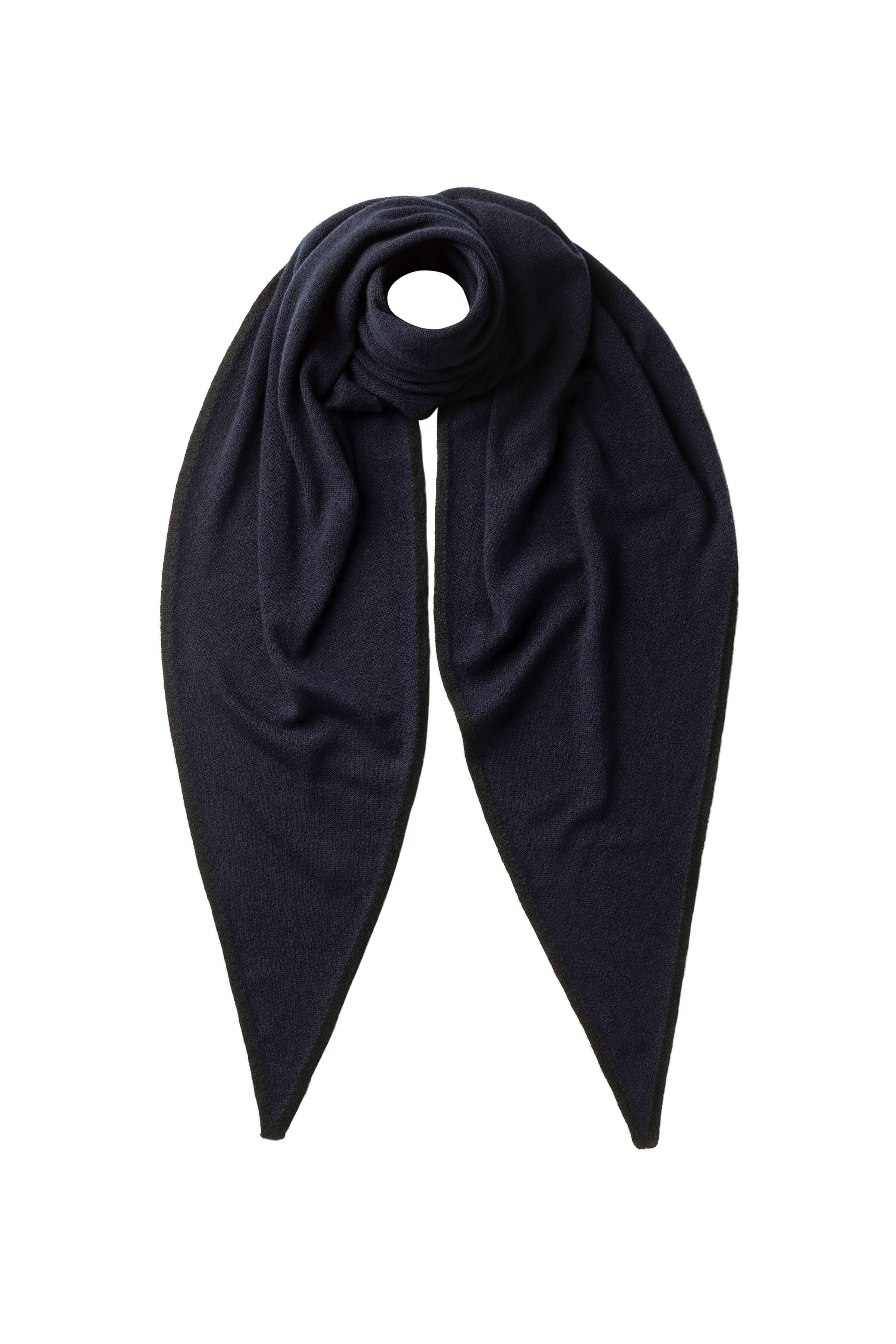 PRODUCT DETAILS 100% Cashmere Length: 210cm | 82.5" , Width at Widest Point: 80cm | 31.5" 2 Ply: Two individual strands are twisted to create this yarn, producing a durable, lightweight knit. Dark Navy & Black Made in Scotland Code: HAE03401