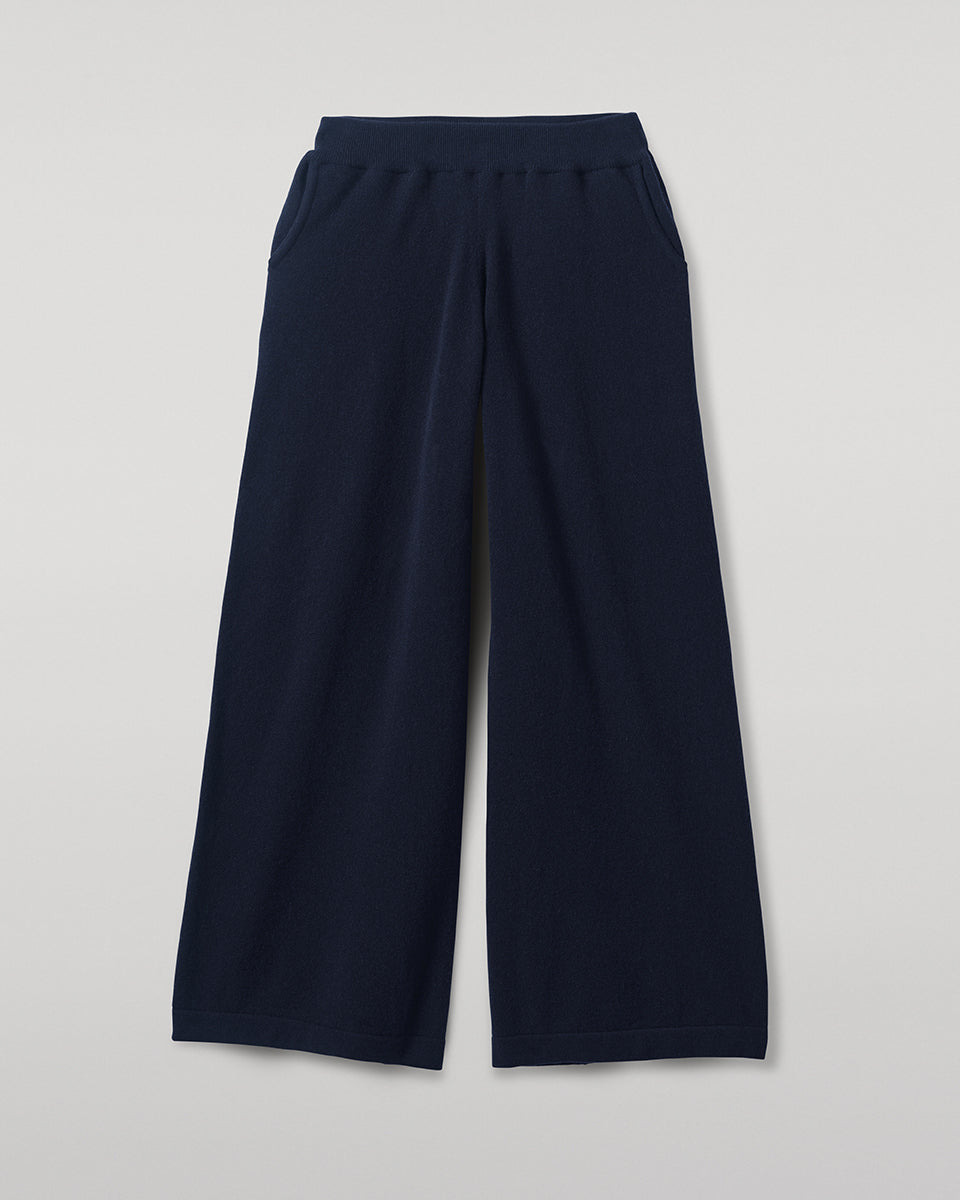 Low rise, slouchy pants with internal pockets in classic navy. Soft, lofty performance cashmere gives our slouch pants a premium next-to-skin feel and enough resistance to hold their shape. An oversized contour and wide leg keep things contemporary. Wear with our iconic cashmere hoodie for travel or lounging. PRODUCT DETAILS 97% Cashmere 3% Polyamide 2 Ply: Two individual strands are twisted to create this yarn, producing a durable, lightweight knit. Model is 5ft10 and wear a size S Made in Scotland Code: KBP00957