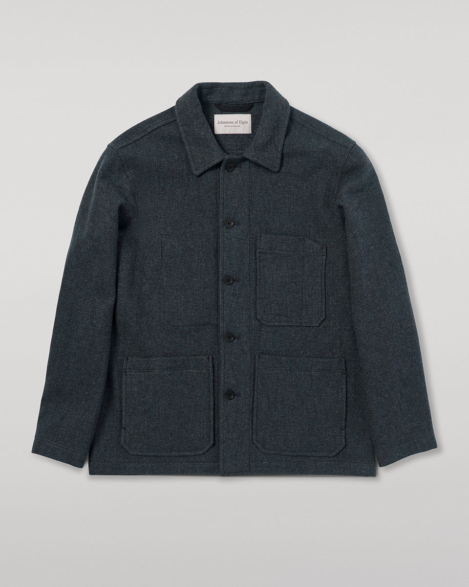 As makers, we are delighted to share this mastery of fabric. A traditional workwear inspired piece with a simple unlined construction. Features a pocket for scissors and a little slot for essential weaving tools - a heddle hook and a dropper. The main outer pockets have double entry, side entry and top entry leading into separate compartments, lined with hardwearing cotton cloth and reinforced with substantial bar tacks. The breast pocket is split for convenience while two internal pockets can house more personal belongings. The Weavers Jacket has dropped shoulders for a soft, relaxed fit, and a silhouette that finishes at the hip. Melange wool offers depth of colour, strengthened for durability by twisting worsted wool around it. This has the same base fabric as our Tweed Jacket but the unlined construction of the Weavers Jacket allows for a less formal aesthetic. Boasts a navy herringbone pattern inspired by our own archives. PRODUCT DETAILS 100% Wool Model is 6ft2 and wear a size 40 Made in Scotland Code: TD000429