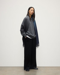A cashmere stole with a soft ombre effect, blending tones with quiet sophistication. Its generous proportions allow for effortless layering, offering warmth without weight. PRODUCT DETAILS 100% Cashmere Navy Navy & Black 190x70cm | 75x28" Made in Scotland Code: WA000056