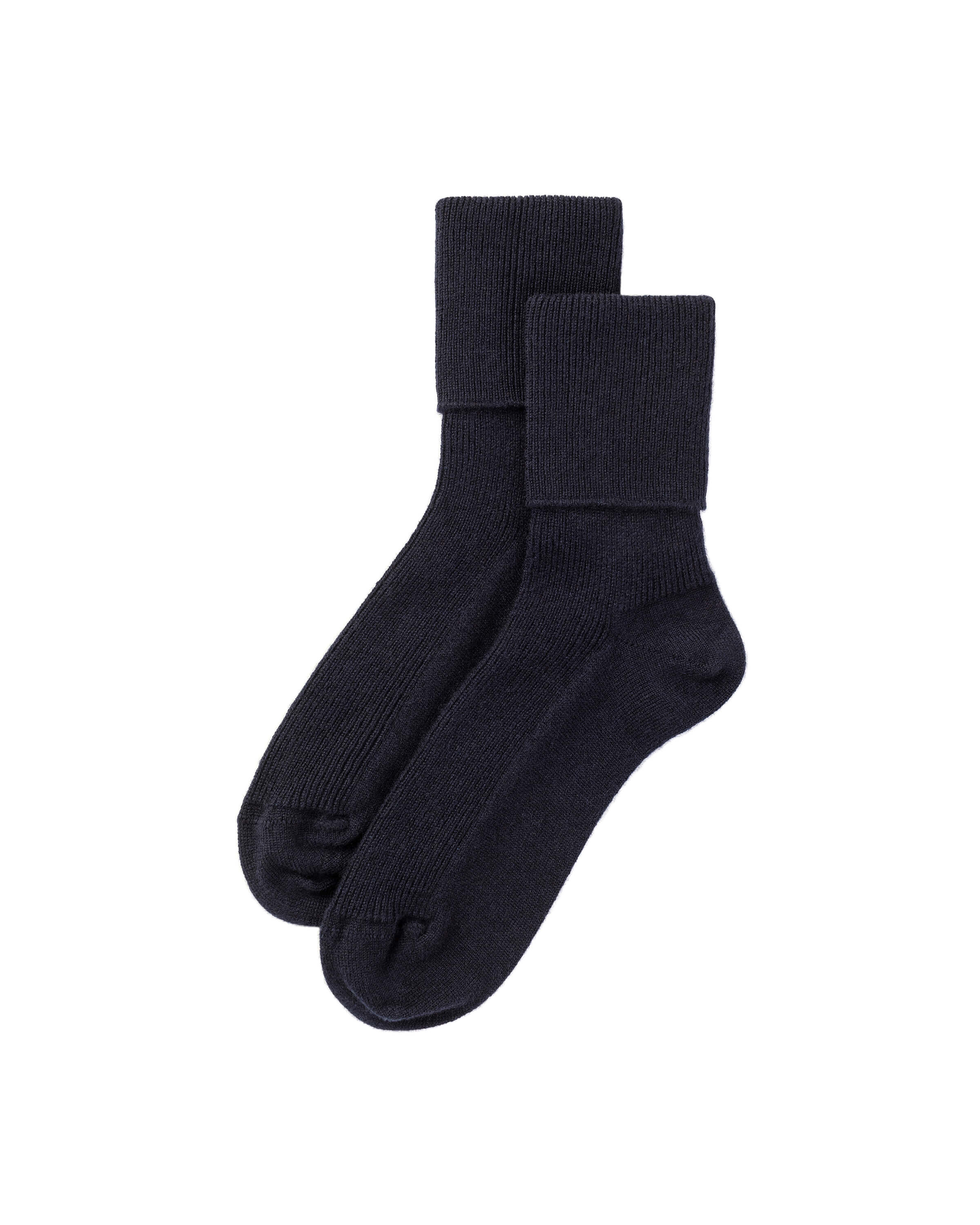 Indulge your feet with our Heather Navy Cashmere Ribbed Ankle Socks. Crafted from the finest fibres, these socks offer unparalleled warmth and comfort. PRODUCT DETAILS 90% Cashmere 10% Nylon One Size | UK4-7 | 37-41 EU 2 Ply: Two individual strands are twisted to create this yarn, producing a durable, lightweight knit. Made in Scotland Code: HBN00007