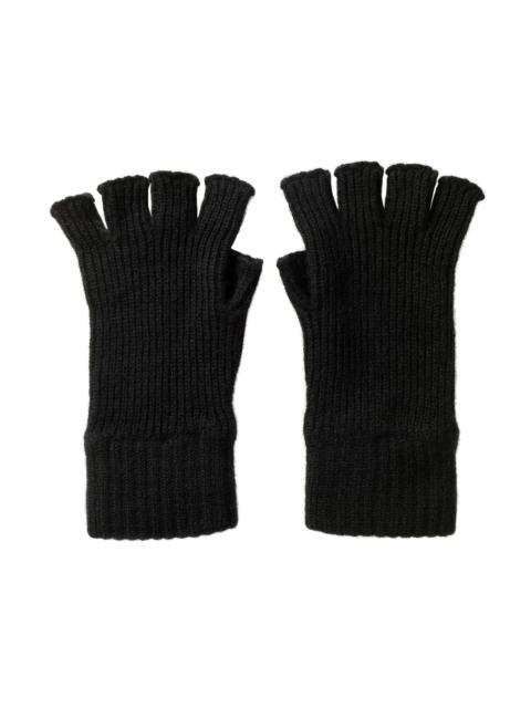 Ribbed Cashmere Black Fingerless Gloves