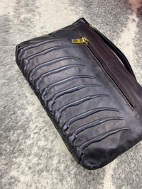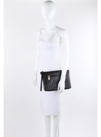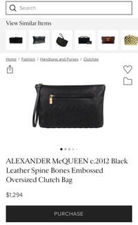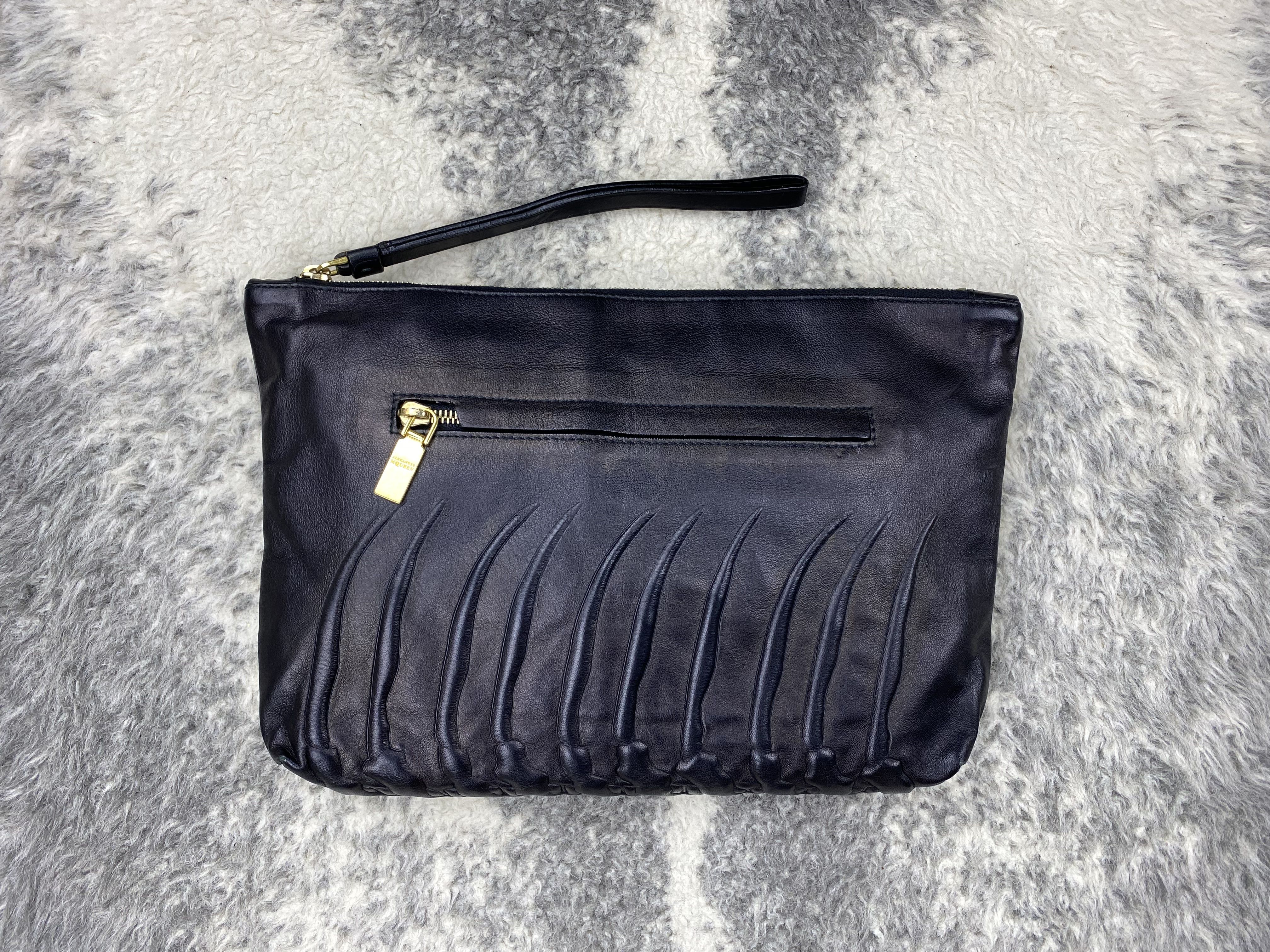 Hi 👋🏼 Welcome! I’m always willing to negotiate the price, so shoot me an offer but please be Paypal ready. •All sales are final. •No returns. •No refund. •No LOWBALLER. ALEXANDER McQUEEN c.2012 Black Leather Spine Bones Embossed Oversized Clutch Bag Brand / Manufacturer: Alexander McQueen Circa: 2012 Designer: Sarah Burton Style: Oversized Clutch Bag Color(s): Black Shades of Gold (hardware) Lined: Yes Unmarked Fabric Content (feel of): Leather (exterior); Twill fabric (interior); Metal (hardware) Additional Details / Inclusions: Alexander McQueen circa 2012 Black leather skeletal embossed oversized leather clutch. Black smooth leather exterior with sculpted spinal column at base of exterior; sculpted embossed black ribcage detail at sides of clutch coming up from clutch base. Smooth leather wrist strap at zipper as zipper pull; gold-toned metal zipper hardware at top of clutch. Black twill fabric interior lining; “Alexander McQueen - Made In Italy” stamped tag at interior back wall. Exterior jetted pocket at front of clutch; gold-toned zipper pull with “Alexander McQueen” signature branded engraving. Style / Serial Number: Marked “343834-506631” Made In: Italy 🇮🇹 MEASUREMENTS & SIZING: Length: 13" Width: 1 1/2" (measured across bottom of bag.) Height: 8" Payment and Shipping: -Accept Paypal & Stripe. -Shipped via DHL EXPRESS and Registered Post for below 100$.