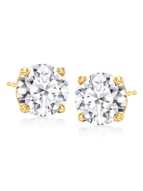 Brilliant Diamond - Brilliant Diamond 3.50 Carat Round Cut Lab Grown Diamond Stud Earrings in 14K Yellow Gold, H Color,