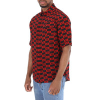 424 Men's Tops. Fashion category: Shirts & Blouses. SKU: 424C-PSS20-0024-RED. Color: Red/Black. 424 Men's Short-sleeve Repeat 424 Logo Shirt In Red/Black. 424 silk-blend shirt featuring a classic collar, a concealed front button fastening, a chest pocket, a curved hem, all-over 424 logo print and short sleeves. Materials: 60% Viscose, 40% Silk. Made in Italy. GENERAL Color: Red/Black INFORMATION Brand: 424 Gender: Mens Model: 424C-PSS20-0024-RED DETAILS Category: Tops Apparel Type: Shirts & Blouses ADDITIONAL INFO Jomashop Sku: -424CPSS200024RED Department: Apparel