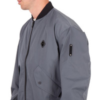 A Cold Wall Men's Outerwear. Fashion category: Coats & Jackets. SKU: ACWMO240-SLATE. Color: Grey. A Cold Wall Cinch Bomber Jacket. A Cinch bomber jacket featuring a logo plaque at the chest, dart and pleat detailing, and ribbed trim. It has a baseball collar, front zip fastening, long sleeves, two side flap pockets, and a straight hem. Polyester 67%, Cotton 33% Made in Italy. GENERAL Color: Grey INFORMATION Brand: A Cold Wall Gender: Mens Model: ACWMO240-SLATE DETAILS Category: Outerwear Apparel Type: Coats & Jackets Material: Cotton, Polyester ADDITIONAL INFO Jomashop Sku: -ACWMO240SLATE Department: Clothing