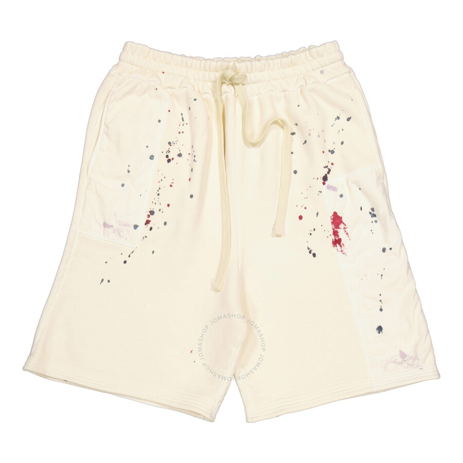 A Cold Wall Men's Bottoms. Fashion category: Shorts. SKU: ACWMB247. Color: Bone. A Cold Wall Studio Paint-Splatter Cotton Track Shorts. The cotton shorts is adorned with a playful multicolour paint splatter detail. They boast a practical drawstring waist, along with two side slit pockets and a sleek rear welt pocket, completing a versatile knee-length design. GENERAL Color: Bone INFORMATION Brand: A Cold Wall Gender: Mens Model: ACWMB247 DETAILS Category: Bottoms Apparel Type: Shorts ADDITIONAL INFO Jomashop Sku: -ACWMB247BONE Department: Clothing