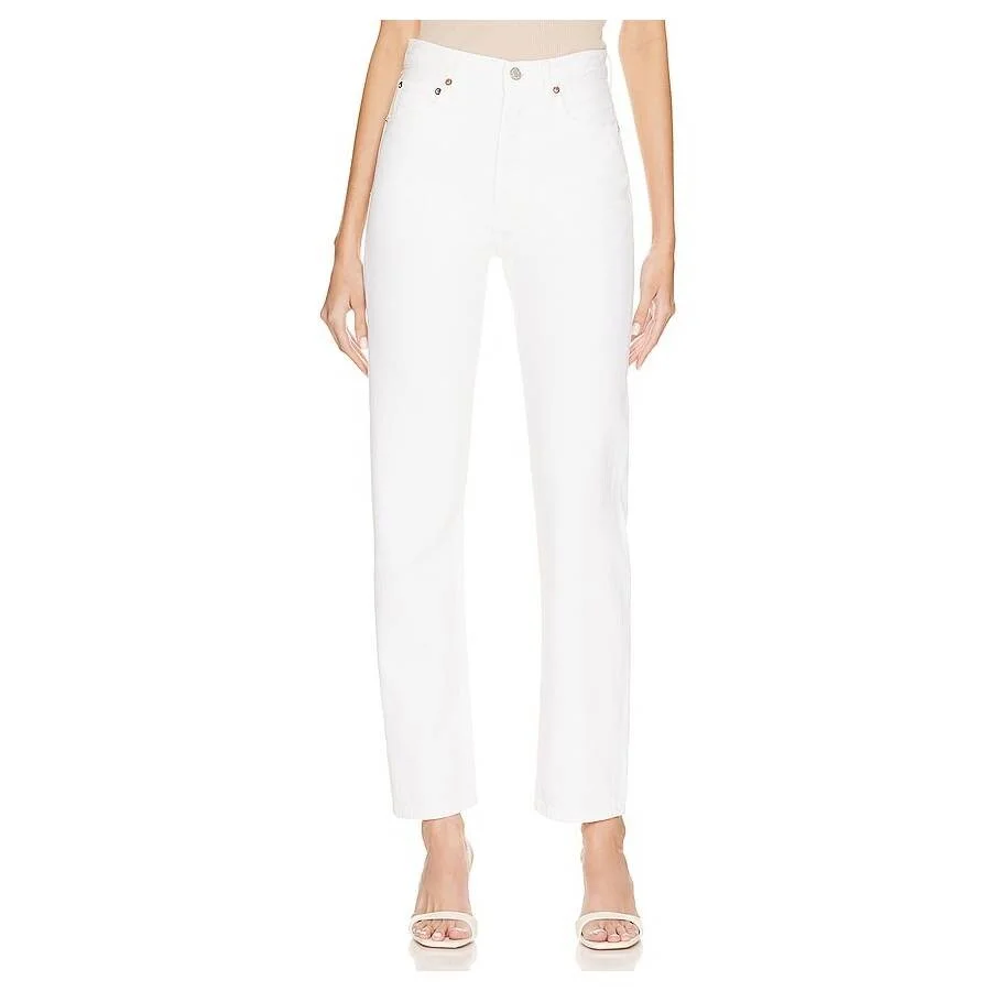 Agolde Ladies Bottoms. Fashion category: Jeans & Denim. SKU: A154D-1183-MARSHMALLOW. Color: Marshmallow (Clean White). Agolde 90s Pinch Waist High Rise Jeans. Meet your new favorite straight-leg jeans, crafted from durable zero-stretch cotton. They feature a high-rise waist designed to flatter, a snug fit through the top block and hips, and a comfortable, classic straight leg that extends to a full-length inseam. 100% Cotton. Made in Turkey. GENERAL Color: Marshmallow (Clean White) INFORMATION Brand: Agolde Gender: Womens Model: A154D-1183-MARSHMALLOW DETAILS Category: Bottoms Apparel Type: Jeans & Denim Material: Cotton ADDITIONAL INFO Jomashop Sku: -154D1183MARSHMALLOW Department: Clothing