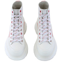 Alexander McQueen Ladies Sneakers. SKU: 697080 W4MV2 8763. Color: White. Alexander Mcqueen Ankle Lace-Up Boots. These cotton and leather boots feature an ankle-length design with a round toe and high top. They have a front lace-up fastening, a branded insole, and a chunky rubber sole for added style and comfort. Made in Italy. Please visit the brand website for sizing information. INFORMATION Brand: Alexander Mcqueen Model: 697080 W4MV2 8763 Gender: Womens DETAILS Category: Sneakers Shoe Style: High Tops Shoe Style: High Tops Color: White Shoe Vamp Style: Lace-up Sole Material: Rubber ADDITIONAL INFO Jomashop Sku: -697080W4MV28763 Department: Shoes