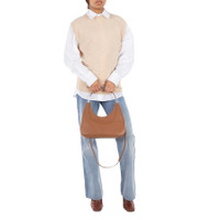 Alexander McQueen Ladies Crossbody. SKU: 803524 1VDBB 2116. Barcode: 3666582720568. Color: Pecan/Silver. Size: Length 30 x Height 25 x Depth 10 cm / 11.8 x 9.8 x 3.9 inches. Alexander Mcqueen Ladies Pecan / Silver T-Bar Bag. The McQueen T-Bar Bag, crafted from brown textured lamb leather, features a structured body with pleated sides. It is accented with a bold circular T-Bar handle in silver-tone metal, engraved with the McQueen logo. This versatile bag can be styled handheld, on the shoulder, or crossbody with the detachable and adjustable leather strap, which offers a strap drop of 50-60 cm (19.6-23.6 inches). The bag is secured with a zip fastening and includes silver-finished hardware, McQueen metal lettering, and a spacious central compartment. Inside, you'll find an internal zip pocket with a card slot and metal D-ring, all lined in luxurious Nappa leather. The T-Bar handle measures 23 cm (9 inches) in length. Material: Lambskin. Made in Italy. GENERAL Size Info: Length 30 x Height 25 x Depth 10 cm / 11.8 x 9.8 x Color: Pecan/Silver INFORMATION Brand: Alexander Mcqueen Gender: Womens Model: 803524 1VDBB 2116 DETAILS Material: Lambskin Closure: Zip-Up ADDITIONAL INFO UPC Code: 3666582720568 Jomashop Sku: Z-AAABB Department: Bags Category: Crossbody