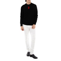 Alexander McQueen Men's Tops. Fashion category: Cardigans & Sweaters. SKU: 807302 Q1BBY 1000. Color: Black. Alexander Mcqueen Men's Black Inverted Skull-Embroidered Sweater. This fine-knit wool blend sweater features an inverted skull embroidery on the front. It is designed with a ribbed crew neck, long sleeves, and ribbed cuffs and hem for a snug, comfortable fit. Made in Italy. GENERAL Color: Black INFORMATION Brand: Alexander Mcqueen Gender: Mens Model: 807302 Q1BBY 1000 DETAILS Category: Tops Apparel Type: Cardigans & Sweaters ADDITIONAL INFO Jomashop Sku: -807302Q1BBY1000 Department: Clothing
