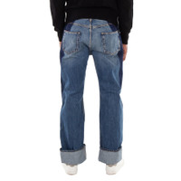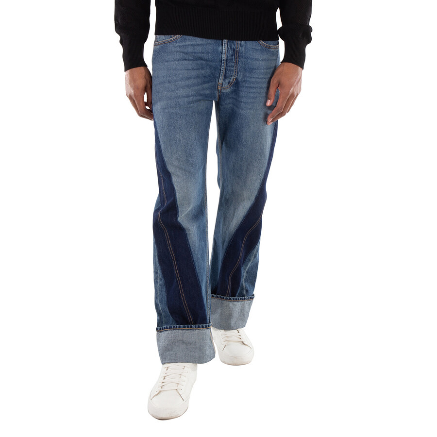 Alexander McQueen Men's Bottoms. Fashion category: Jeans & Denim. SKU: 792159 QYAA5 4211. Color: Blue Washed. Alexander Mcqueen Men's Blue Washed Twisted Jeans. A pair of cotton-washed denim jeans featuring a whiskered effect, contrast stitching, and twisted side stripe detailing. These jeans also include rivet accents, belt loops, and a concealed fly with button fastening. Designed with a straight leg fit and the classic five-pocket style, they feature turn-up cuffs for added style. Made in Italy. GENERAL Brand Type: Designer Color: Blue Washed INFORMATION Brand: Alexander Mcqueen Gender: Mens Model: 792159 QYAA5 4211 DETAILS Category: Bottoms Apparel Type: Jeans & Denim ADDITIONAL INFO Jomashop Sku: -792159QYAA54211 Department: Clothing