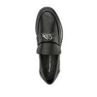 Alexander McQueen Ladies Loafers. SKU: 783218 WIES3 1081. Color: Black. Alexander Mcqueen Seal-Plaque Leather Loafers. These calf leather loafers feature a gunmetal-tone Seal logo plaque and strap detailing. They offer a slip-on style with a round toe, leather lining, and a branded insole. The loafers are finished with a low stacked heel for a comfortable and stylish look. Made in Italy. Please visit the brand website for sizing information. INFORMATION Brand: Alexander Mcqueen Model: 783218 WIES3 1081 Gender: Womens DETAILS Category: Loafers Shoe Style: Loafer Shoe Style: Loafer Color: Black Shoe Vamp Style: Slip-on Upper Material: Calfskin Sole Material: Leather ADDITIONAL INFO Jomashop Sku: -783218WIES31081 Department: Shoes