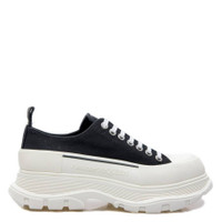Alexander McQueen Men's Shoes. SKU: 705660 W4MV2 1070. Color: Black/White. Alexander McQueen Tread Slick Lace-Up Sneakers. This canvas sneaker features a thick oversized rubber tread sole, textured rubber wrap detailing on the lace-up, a tonal Alexander McQueen signature, a signature ribbon on the heel, and a round toe silhouette with a rubber toe cap. Material: Cotton. Made in Italy. Please visit the brand website for sizing information. GENERAL Brand Type: Designer INFORMATION Brand: Alexander Mcqueen Model: 705660 W4MV2 1070 Gender: Mens DETAILS Category: Sneakers Color: Black/White Shoe Vamp Style: Lace-up Upper Material: Cotton Sole Material: Rubber ADDITIONAL INFO Jomashop Sku: -705660W4MV21070 Department: Shoes
