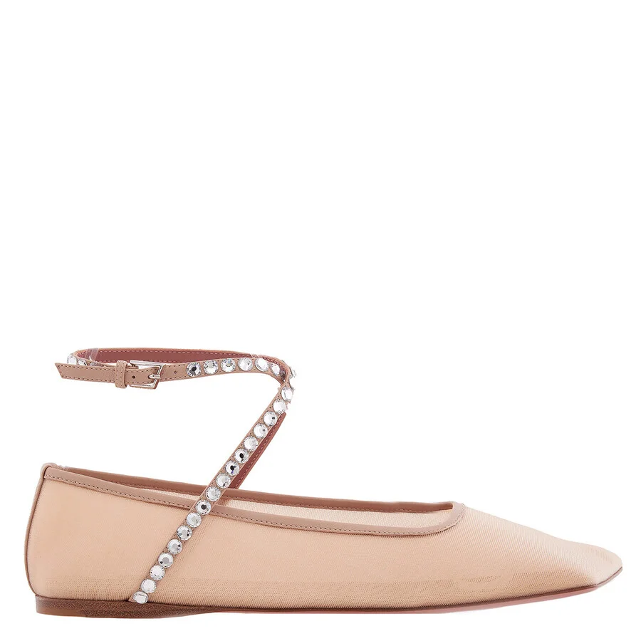 Amina Muaddi Ladies Flats. SKU: ANE MESH FLAT. Color: Mesh Latte. Amina Muaddi Ane Crystal Mesh Flats. The mesh ballet flat features a squared oblique toe and crystal-embellished straps for a touch of sparkle. Crafted with a combination of leather and rubber sole, it blends elegance with everyday comfort. Outer: 80% Mesh, 20% Lambkin. Please visit the brand website for sizing information. GENERAL configurable_parent_sku: -LATMESHWHITEWHITECR Size Info: 8 configurable_parent_url: amina-muaddi-ane-crystal-mesh-flats-in-white-ane-mesh-flat-mesh-white-white-cr Shoe Size: Shoe Size: 8 INFORMATION Brand: Amina Muaddi Model: ANE MESH FLAT-MESH LATTE Gender: Womens DETAILS Category: Flats Shoe Style: Ankle Strap Shoe Style: Ankle Strap Color: Mesh Latte Upper Material: Mesh;Lambskin Sole Material: Leather/Rubber ADDITIONAL INFO UPC Code: 8000000309563 Jomashop Sku: Z-JPUE4 Department: Shoes