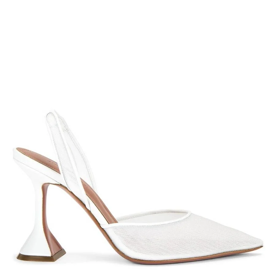 Amina Muaddi Ladies Heels. SKU: HOLLI MESH SLING 95-MESH WHITE. Color: Mesh White. Amina Muaddi Holli Mesh Slingback Pumps. The Holli slingback pumps by Amina Muaddi feature a sleek slip-on design crafted from black mesh. They showcase a pointed toe, a branded insole, and are elevated by the signature 95mm sculptural “Martini” heel, combining elegance with a contemporary edge. Outer: 100% Mesh. Sole: 80% Goat Leather, 20% TPU. Made in Italy. Please visit the brand website for sizing information. INFORMATION Brand: Amina Muaddi Model: HOLLI MESH SLING 95-MESH WHITE Gender: Womens DETAILS Category: Heels Shoe Style: Slingbacks Shoe Style: Slingbacks Color: Mesh White Shoe Vamp Style: Slip-on Heel Size: 95 mm ADDITIONAL INFO Jomashop Sku: -ESHSLING95MESHWHITE Department: Shoes
