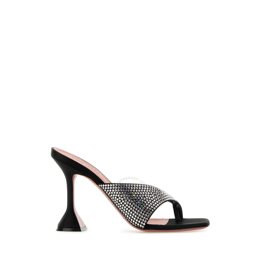 Amina Muaddi Ladies Sandals. SKU: SHIONA SLIPPER-SATIN BLACK + WHITE. Color: Satin Black/White Crystals. Amina Muaddi Ladies Satin Black/White Crystals Shiona Slippers. This pair of mules is crafted from satin and features a squared toe for a modern look. They are designed with a unique, peculiar heel that adds an eye-catching touch. The mules have an embossed logo on the inside and are slip-on for easy wear. The shoes are further embellished with rhinestones, adding a glamorous and sparkling finish. Made In Italy. Please visit the brand website for sizing information. INFORMATION Brand: Amina Muaddi Model: SHIONA SLIPPER-SATIN BLACK + WHITE Gender: Womens DETAILS Category: Sandals Shoe Style: Mules Shoe Style: Mules Color: Satin Black/White Crystals Shoe Vamp Style: Slip-on Sole Material: Leather/Rubber Heel Size: 9,5 cm ADDITIONAL INFO Jomashop Sku: -Y-93DD8E Department: Shoes