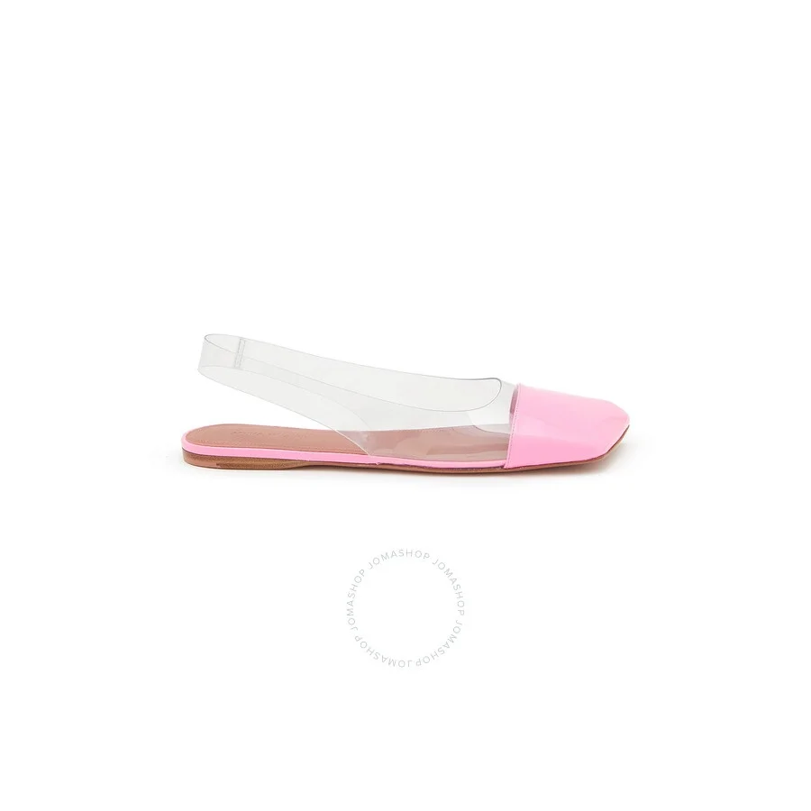 Amina Muaddi Ladies Flats. SKU: ANE GLASS SLINGBACK FLAT-PATENT TRA. Color: Patent Transparent Pvc/Pink. Amina Muaddi Ladies Patent Transparent Pvc/Pink Ane Glass Flats. These slingbacks are crafted from glass PVC and patent leather, featuring a slip-on style, a branded insole, square toe, and a transparent design for a modern, edgy look. Made in Italy. Please visit the brand website for sizing information. INFORMATION Brand: Amina Muaddi Model: ANEGLASSSLINGBACKFLATFLUOPINK Gender: Womens DETAILS Category: Flats Shoe Style: Slingbacks Shoe Style: Slingbacks Color: Patent Transparent Pvc/Pink Shoe Vamp Style: Slip-on Sole Material: Leather/Rubber ADDITIONAL INFO Jomashop Sku: -NGBACKFLATPATENTTRA Department: Shoes