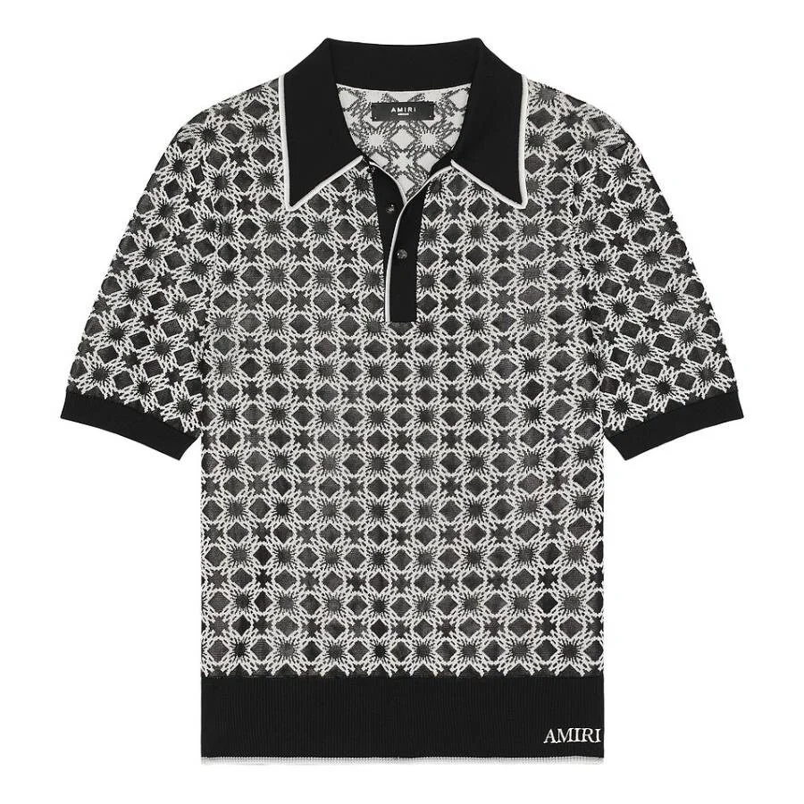 Amiri Men's Tops. Fashion category: Polo Shirts. SKU: AMKNPO1058-BLACK. Color: Black. Amiri MA Quad Monogram Polo Shirt. This polo shirt features a classic three-button closure and is finished with refined ribbed accents for a polished look. The MA Quad monogram adds a distinctive touch to the knitwear, while the short sleeves provide a timeless, casual style. 100% Viscose. Made in Italy. GENERAL Color: Black INFORMATION Brand: Amiri Gender: Mens Model: AMKNPO1058-BLACK DETAILS Category: Tops Apparel Type: Polo Shirts Material: Viscose ADDITIONAL INFO Jomashop Sku: -AMKNPO1058BLACK Department: Clothing