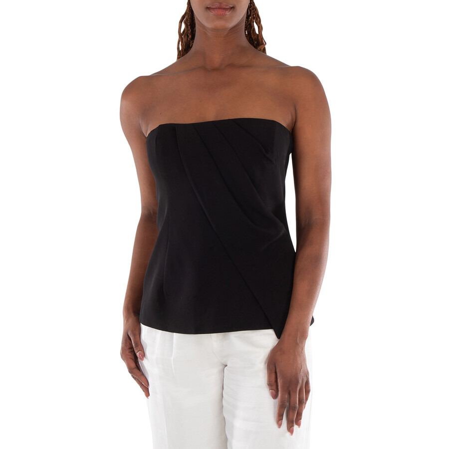 Anine Bing Ladies Tops. Fashion category: Shirts & Blouses. SKU: A-07-9820-000-BLACK. Color: Black. Anine Bing Ladies Black Halle Viscose-Crepe Top. Crafted from stretch viscose-crepe, this Halle top features a strapless silhouette that drapes across the front. It is finished with grip tape at the bust for a secure fit and an invisible zipper at the back. 96% VISCOSE, 4% SPANDEX. GENERAL Color: Black INFORMATION Brand: Anine Bing Gender: Womens Model: A-07-9820-000-BLACK DETAILS Category: Tops Apparel Type: Shirts & Blouses Material: Spandex, Viscose ADDITIONAL INFO Jomashop Sku: -A079820000BLACK Department: Clothing