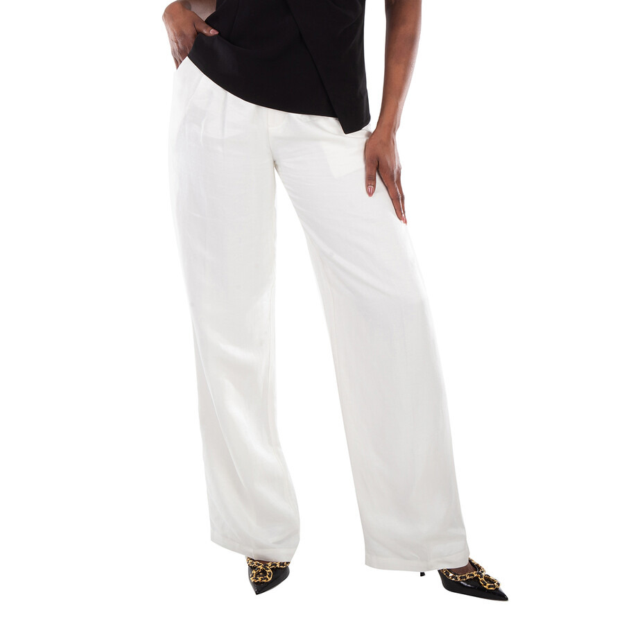 Anine Bing Ladies Bottoms. Fashion category: Pants & Leggings. SKU: A-03-3269-100-WHITE. Color: White. Anine Bing Ladies White Carrie Wide-Leg Trousers. Made from a lyocell-linen blend, these trousers feature a front button fastening, belt loops, and two side inset pockets. They are designed with pleat detailing, two faux back welt pockets, and a wide-leg silhouette. Lyocell 35%, Rayon 33%, Linen/Flax 32% GENERAL Color: White INFORMATION Brand: Anine Bing Gender: Womens Model: A-03-3269-100-WHITE DETAILS Category: Bottoms Apparel Type: Pants & Leggings Material: Lyocell, Linen, Rayon ADDITIONAL INFO Jomashop Sku: -A033269100WHITE Department: Clothing
