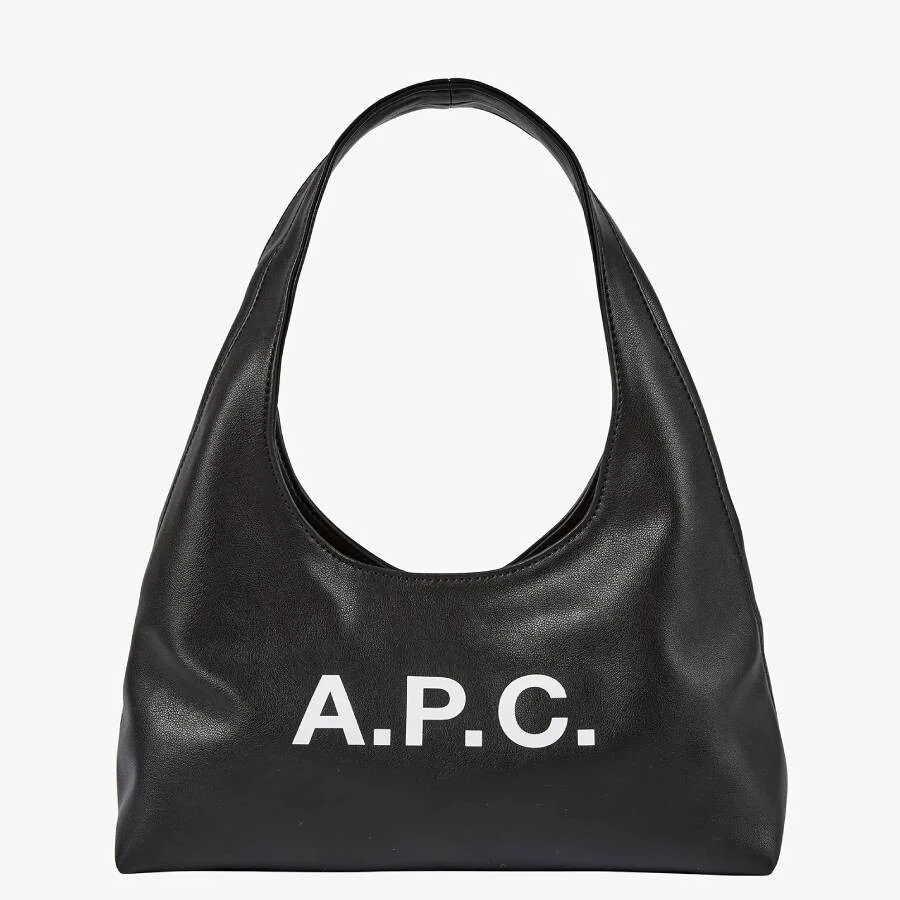 A.P.C. Ladies Shoulder Bag. Ninon series. SKU: PUAAT-F67027-NOIR. Color: Black. A.P.C. Baby Ninon Shoulder Bag. The Baby Ninon Shoulder Bag is a compact version of the Ninon line, crafted from black recycled leather-like material. It features a magnetic closure, two handles for hand or shoulder carry, an interior pocket, and a subtle white A.P.C. logo on the front. Perfect for everyday essentials in a minimalist design. Details Magnetic closure. Two handles for hand or shoulder carry. Interior pocket. White logo detail. Dimensions: 10.4" W x 5.1" H x 1.8" D (26.5 x 13 x 4.5 cm). Material: Recycled leather-like. GENERAL Size Info: 10.4" W x 5.1" H x 1.8" D Color: Black Collection Name: Ninon INFORMATION Brand: A.P.C. Series: Ninon Gender: Womens Model: PUAAT-F67027-NOIR ADDITIONAL INFO UPC Code: 3613061809436 Jomashop Sku: Z-JHF2L Department: Bags Category: Shoulder Bag
