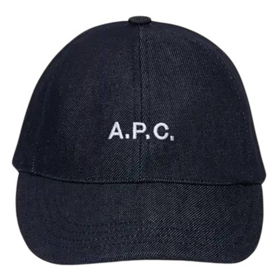 A.P.C. Men's Hats. Fashion category: Hats. SKU: COCSX M24069 INDIGO. Color: Indigo. A.P.C. Charlie Embroidered Logo Denim Baseball Cap. This baseball cap is crafted from premium Japanese denim and features a classic six-panel construction with topstitched seams and a structured visor. Designed for comfort and durability, it includes an adjustable tab at the back, two embroidered eyelets on each side for breathability, and a reinforced interior finished with a grosgrain headband and seam details. The front is highlighted by a contrasting embroidered “A.P.C.” logo, while a bonded cotton-polyester blend lining ensures a smooth, durable finish. 98% Cotton, 2% Polyurethane. GENERAL Ring Style: Fashion Material: Cotton, Polyurethane Gender: Mens Color: Indigo Apparel Type: Hats INFORMATION Brand: A.P.C. Model: COCSX M24069 INDIGO ADDITIONAL INFO Jomashop Sku: -COCSXM24069IAI Department: Fashion Accessories Category: Hats