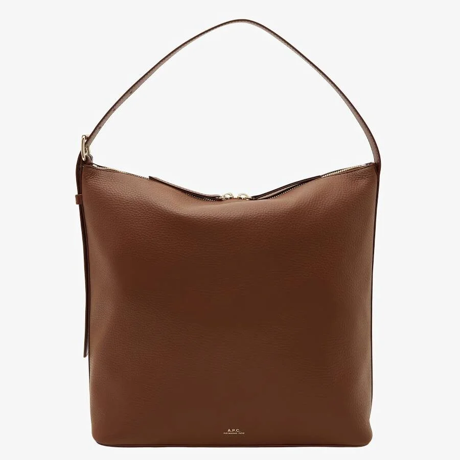 A.P.C. Ladies Shoulder Bag. Vera series. SKU: PXCBL-F61902 -NOISETTE. Color: Brown. A.P.C. Vera Shoulder Bag. The Vera Bag is a square shoulder bag crafted from a mix of nut brown grained and smooth leather. It features a large adjustable shoulder strap with a gold-tone buckle for hand or shoulder carry, a two-way zipper with leather pulls, and a cotton-lined interior with a single pocket for essentials. Details: Adjustable shoulder strap with gold-tone buckle. Two-way zipper with leather pulls. Interior: One pocket, cotton lining. Dimensions: 11" W x 12.6" H x 4.1" D (28 x 32 x 10.5 cm). Material: Grained and smooth leather. GENERAL Size Info: 11" W x 12.6" H x 4.1" D Color: Brown Collection Name: Vera INFORMATION Brand: A.P.C. Series: Vera Gender: Womens Model: PXCBL-F61902 -NOISETTE ADDITIONAL INFO UPC Code: 3613061803854 Jomashop Sku: Z-YZ5WH Department: Bags Category: Shoulder Bag